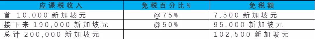 新設立新加坡(稅)居民企業(yè)的應納稅所得額中,前10萬新元可免稅75%,10萬-20萬新元可免稅50%。該方案的其他內容保持不變。