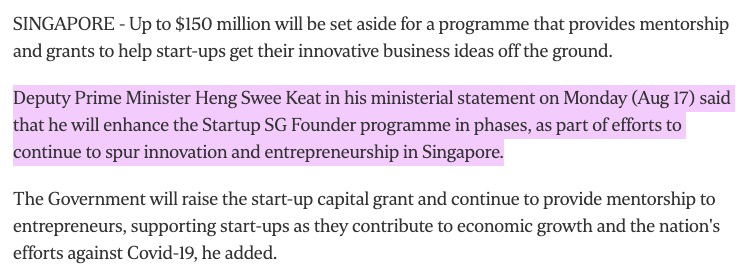 新加坡對初創(chuàng)企業(yè)的支持高達1.5億新幣